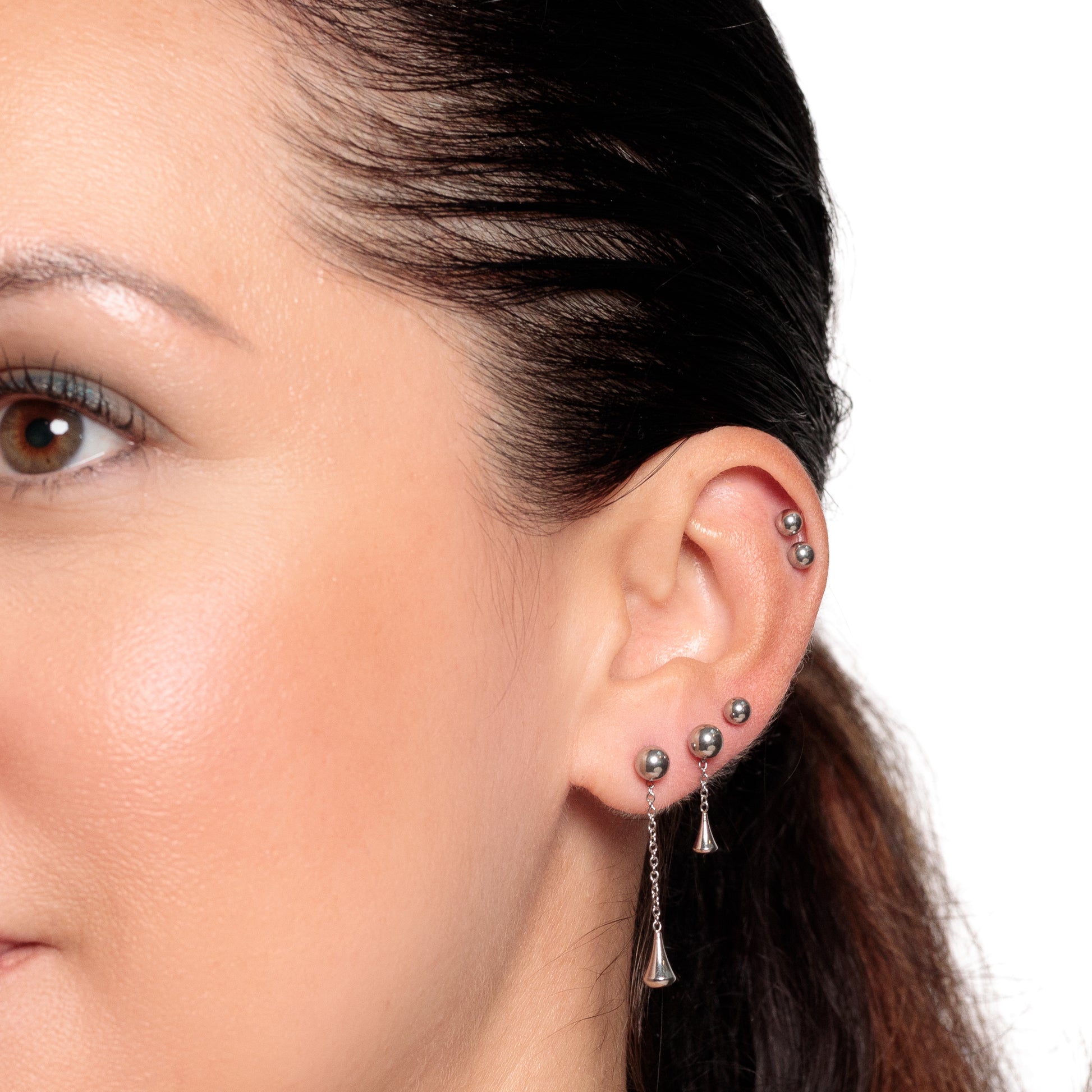 Modellen Josefine har kombinerat hängena med Triple Ariel Titanium och två Ariel Titanium 4mm på Helix.