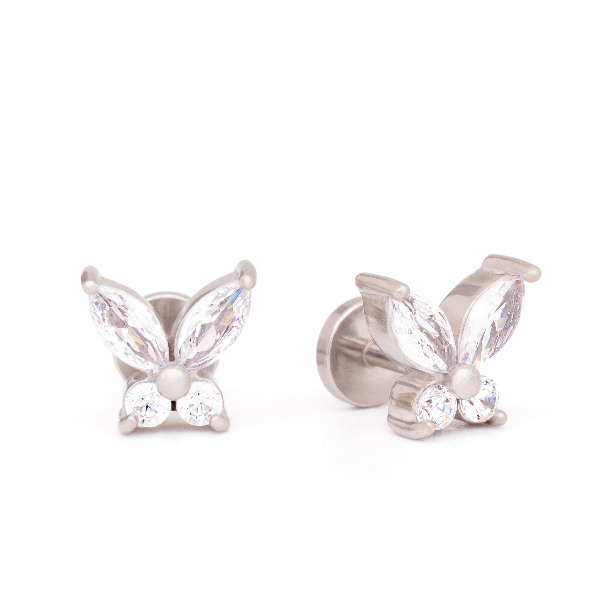 Tingeling Titanium är ett par förtrollande fjärils-örhängen i glansigt titan, identiskt med silver fast snäppet bättre. Två marquise och två briljatformade kristallstenar i stilrent vitt som formar de fjärilarnas magiska vingar. Bär med dig en liten bit av naturens magi med dessa harmoniska titanörhängen.