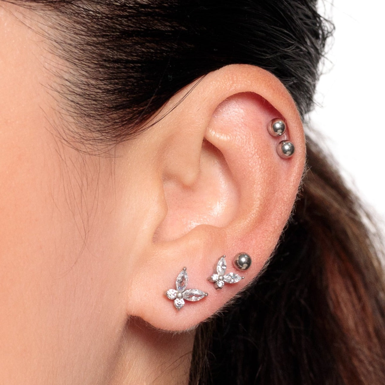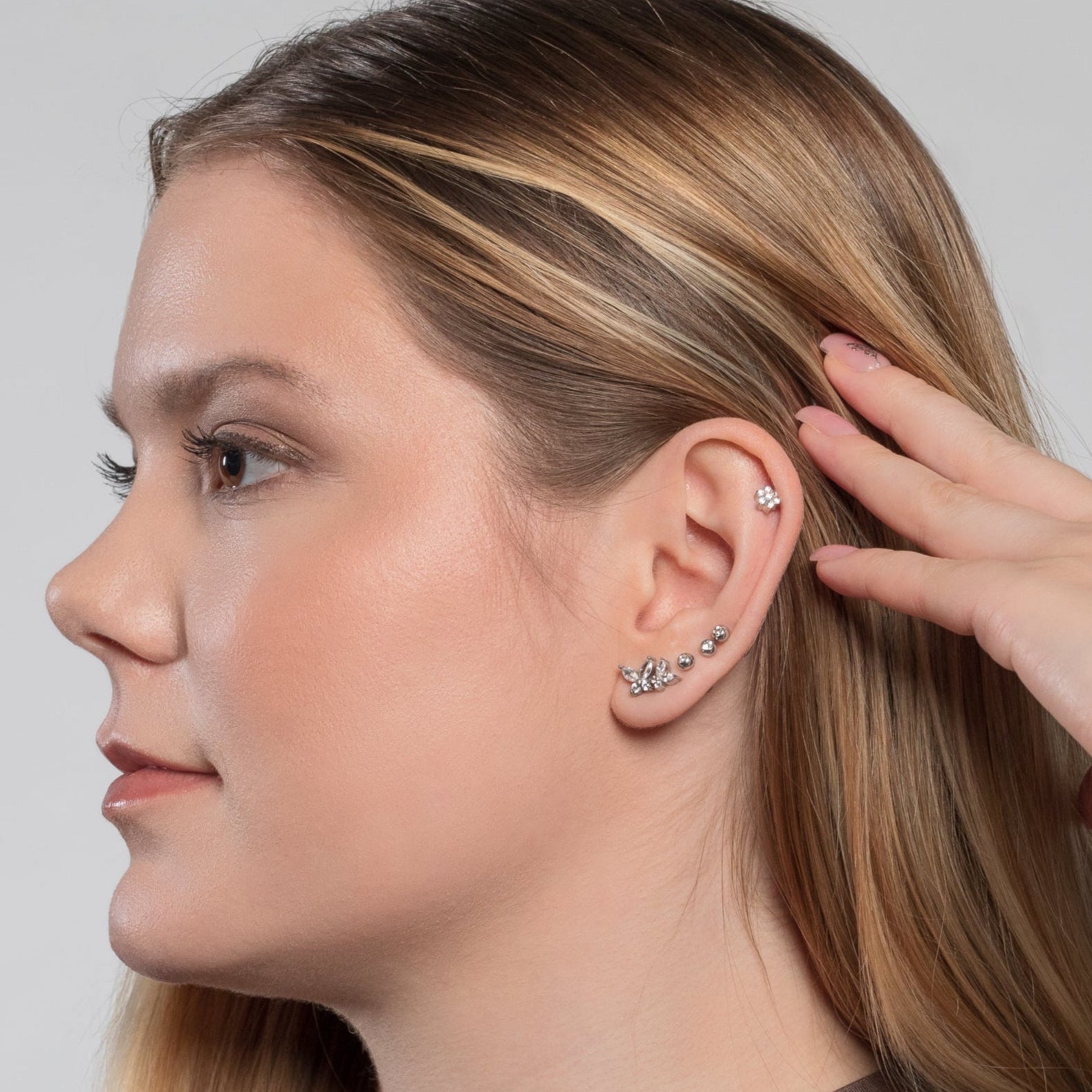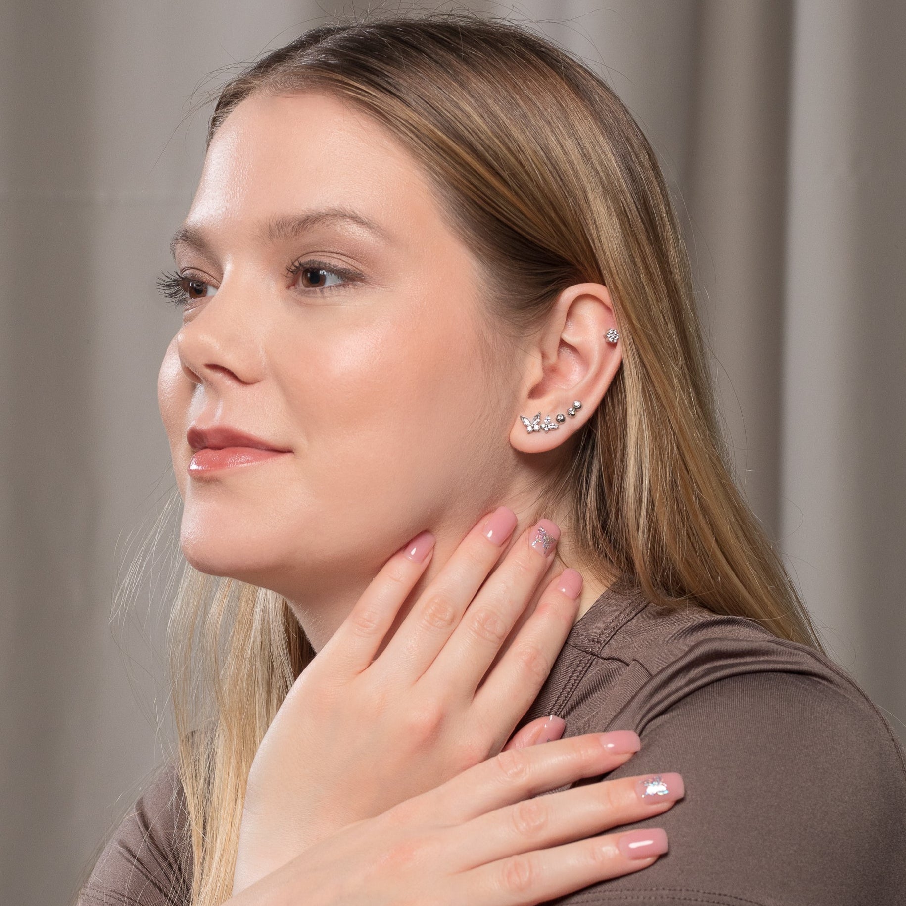 Modellen Marie har kombinerat dessa med Aurora Snow 4mm och Isabela Titanium 6mm på helix.