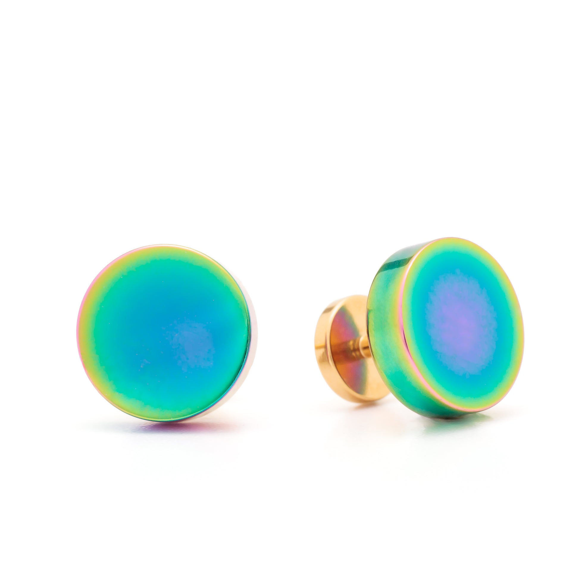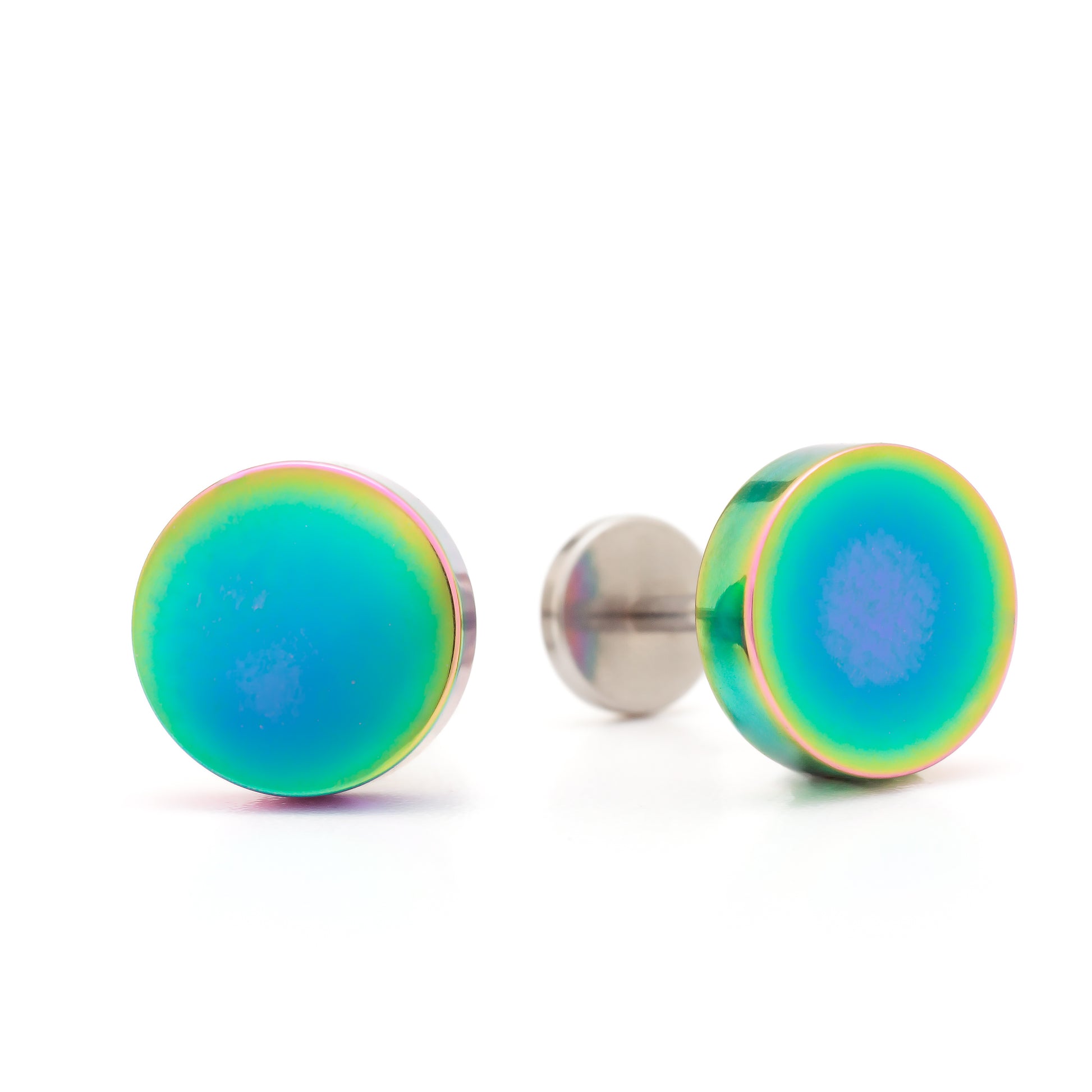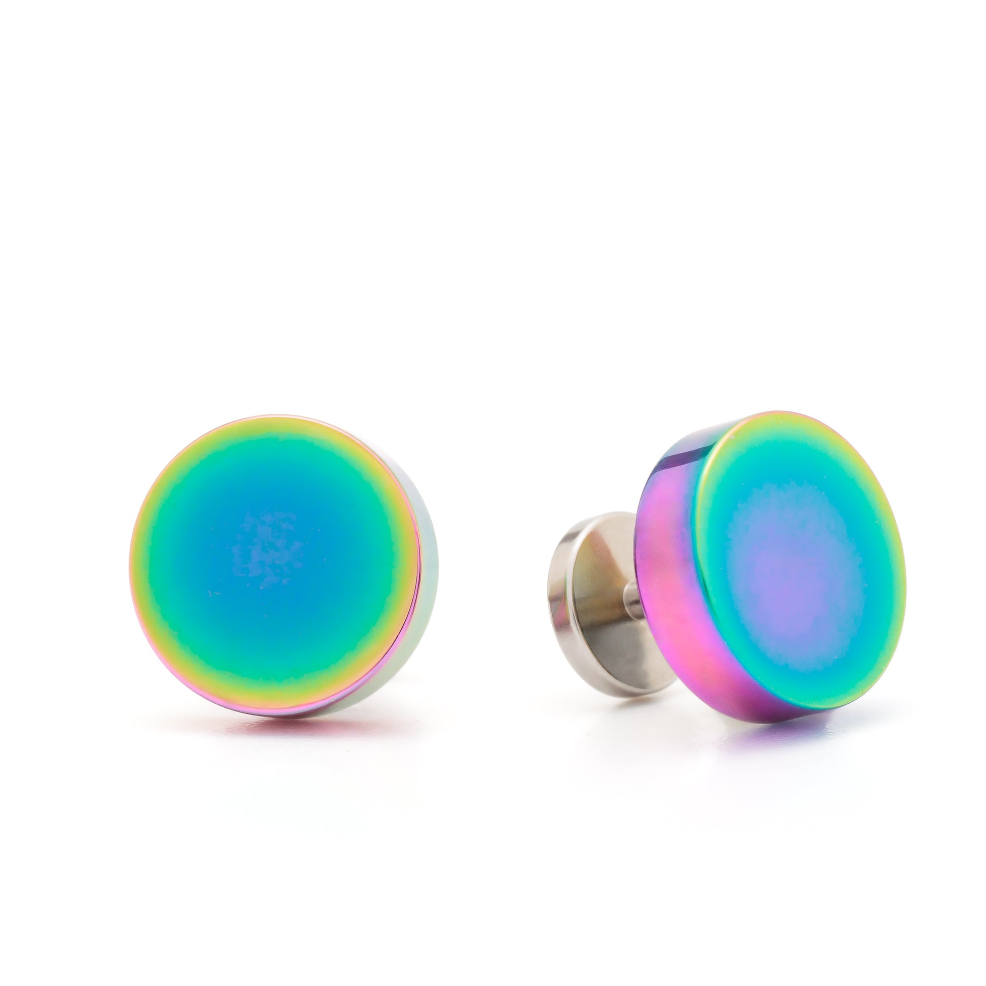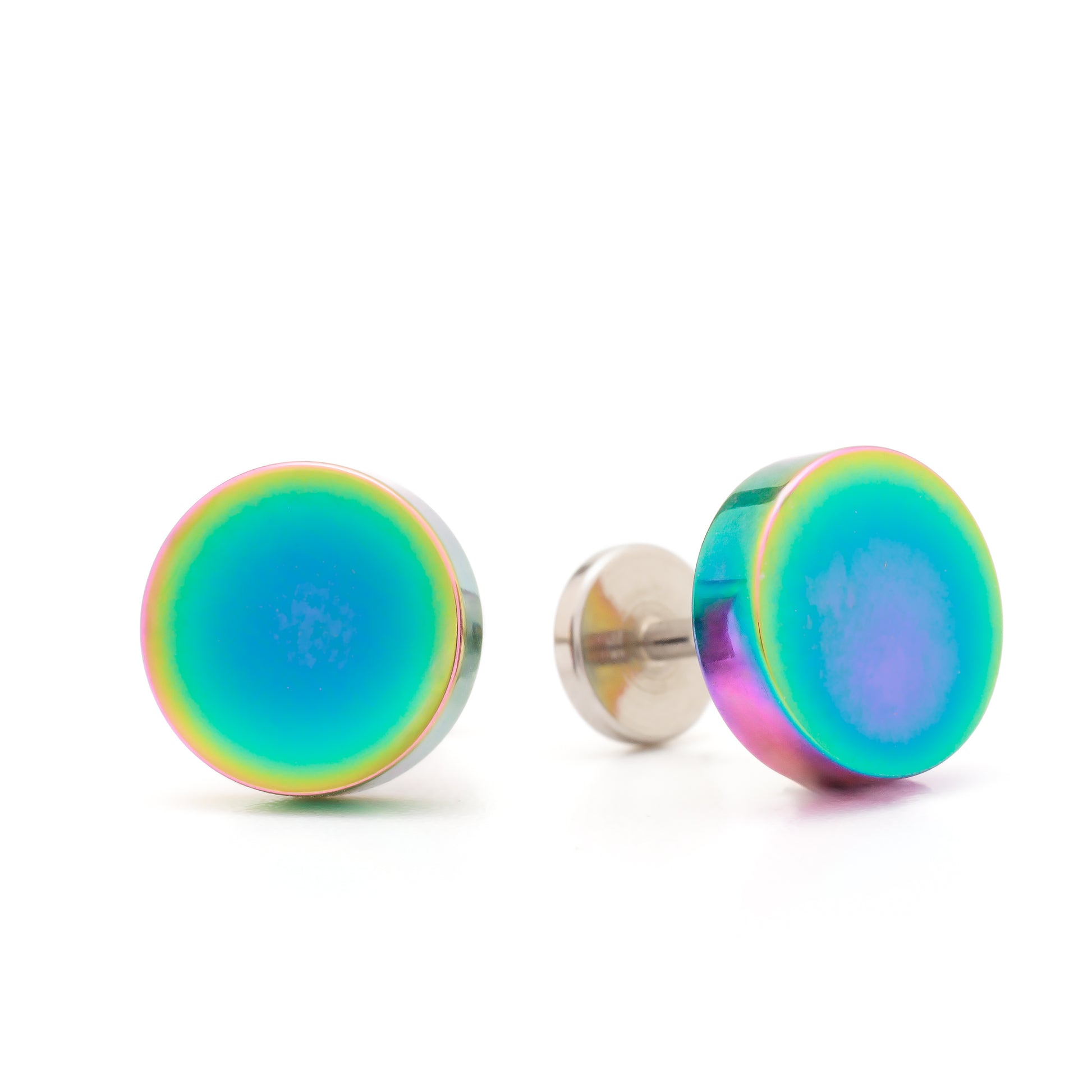 Vår mest älskade modell i en stilren, platt design. Nu i regnbågsfärger med en djupblå nyans som huvudton. Galaxy står för drömmar och oändlighet, en färg som speglar både himlens frihet och havets djup. Ett par titanörhängen för dig som vill bära stillhet och mystik på samma gång.