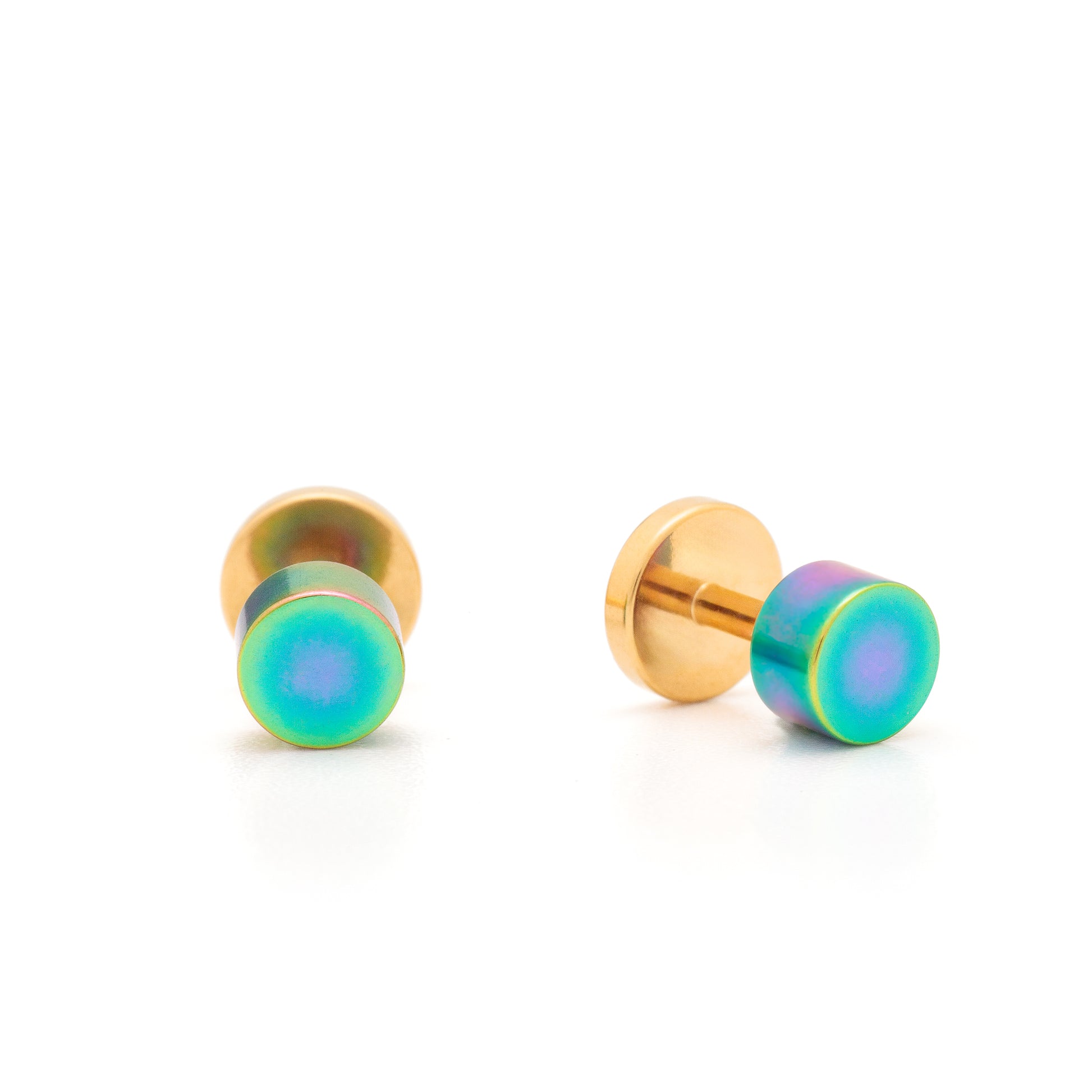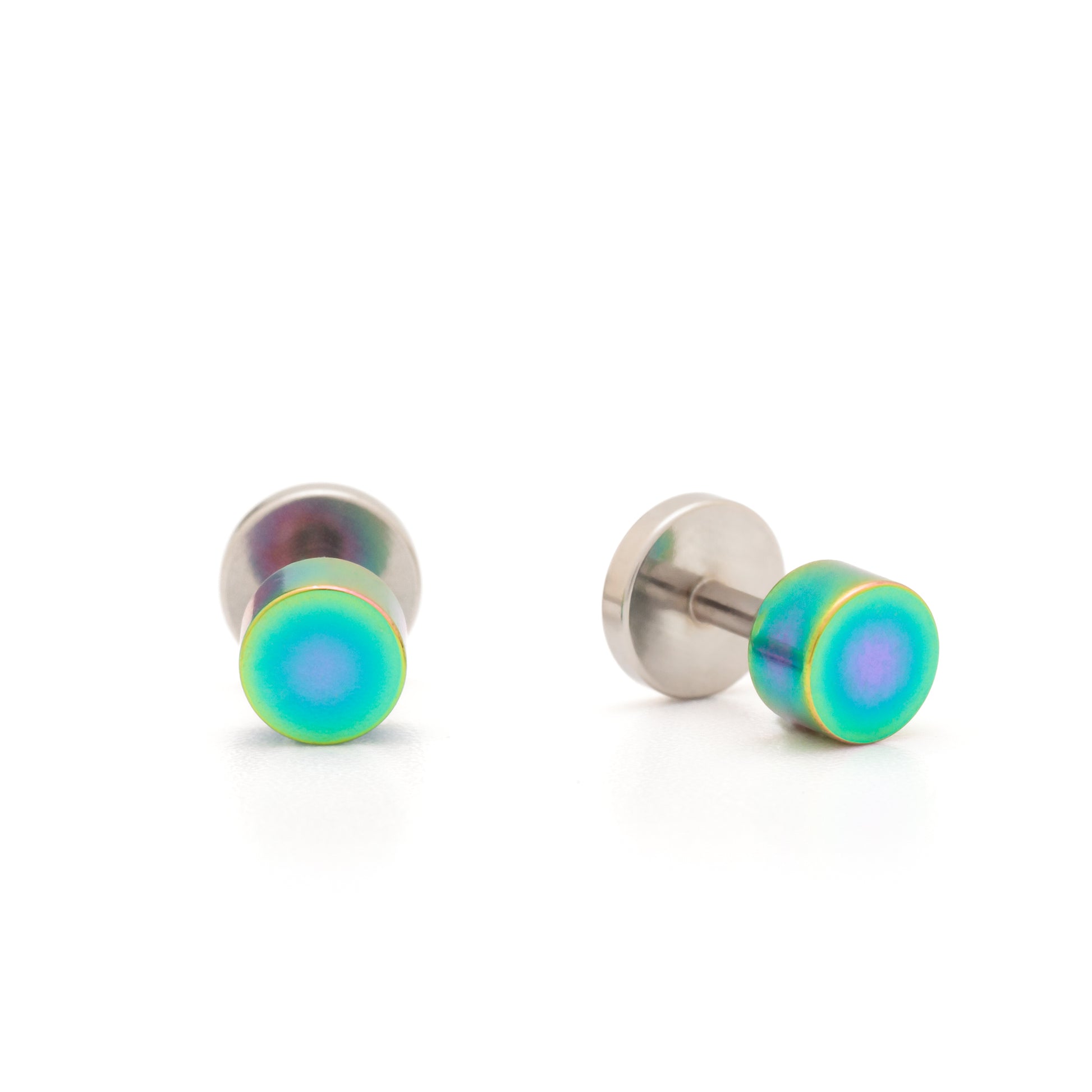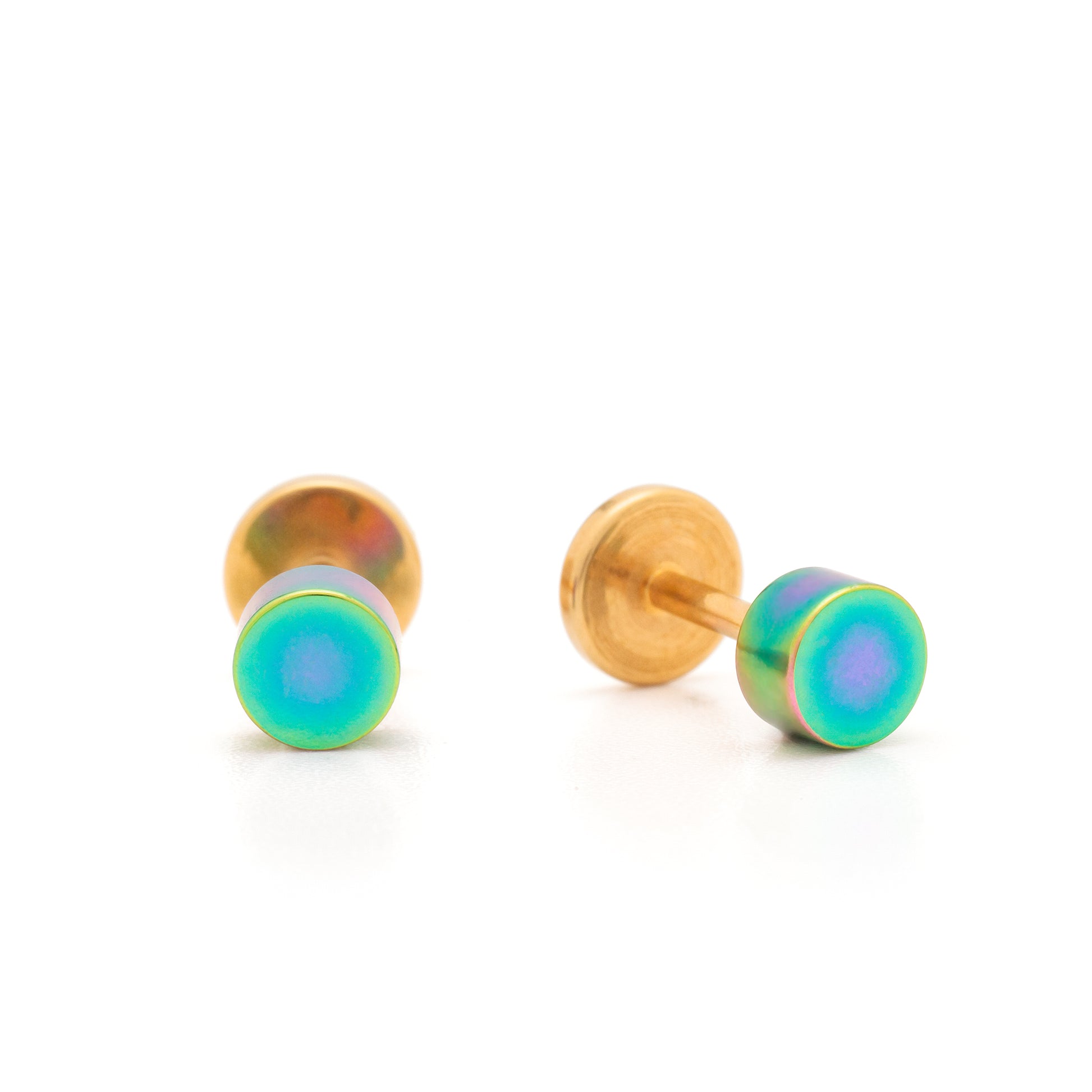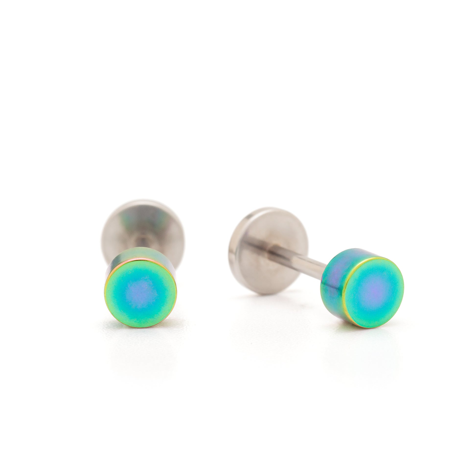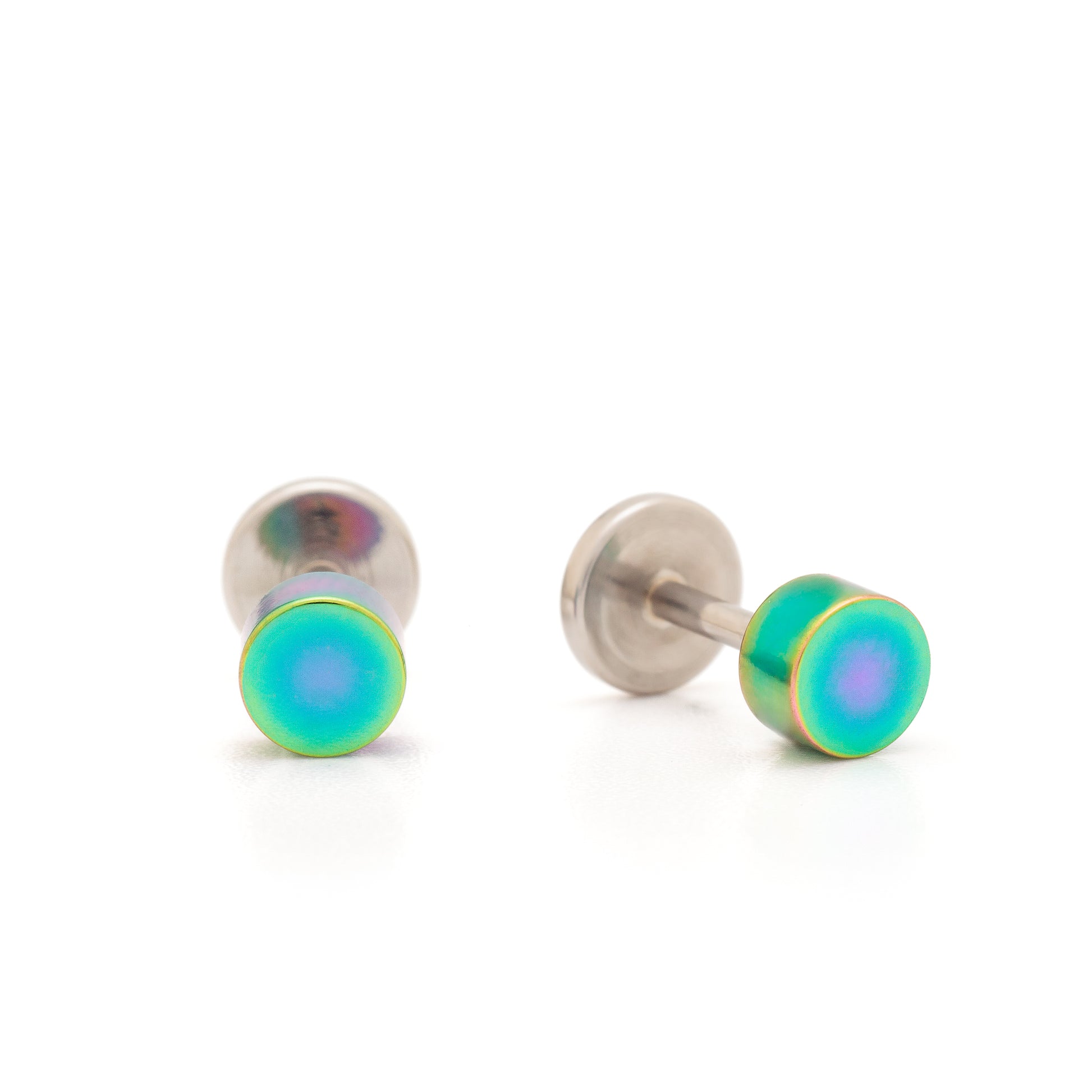 Vår mest älskade modell i en stilren, platt design. Nu i regnbågsfärger med en djupblå nyans som huvudton. Galaxy står för drömmar och oändlighet, en färg som speglar både himlens frihet och havets djup. Ett par titanörhängen för dig som vill bära stillhet och mystik på samma gång.