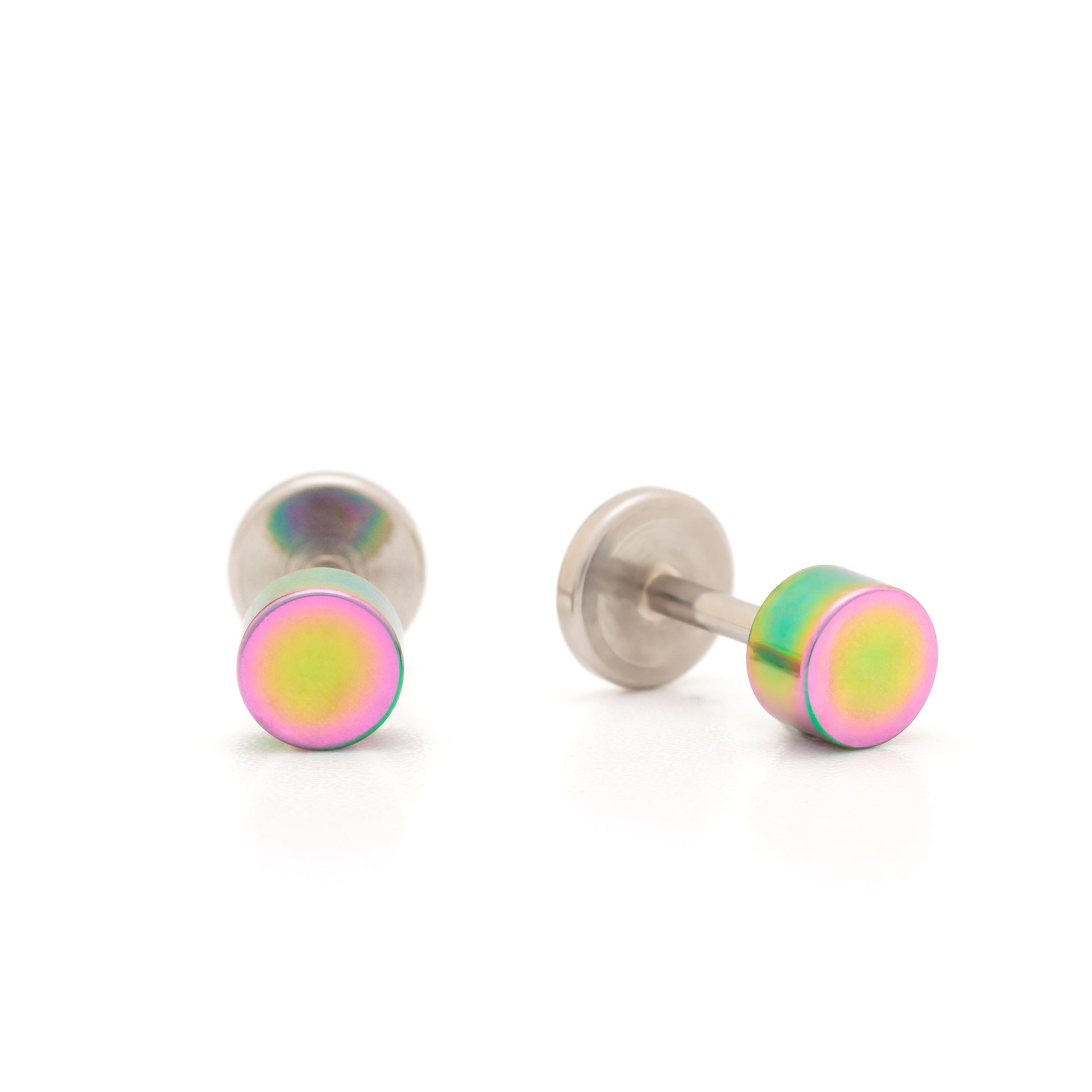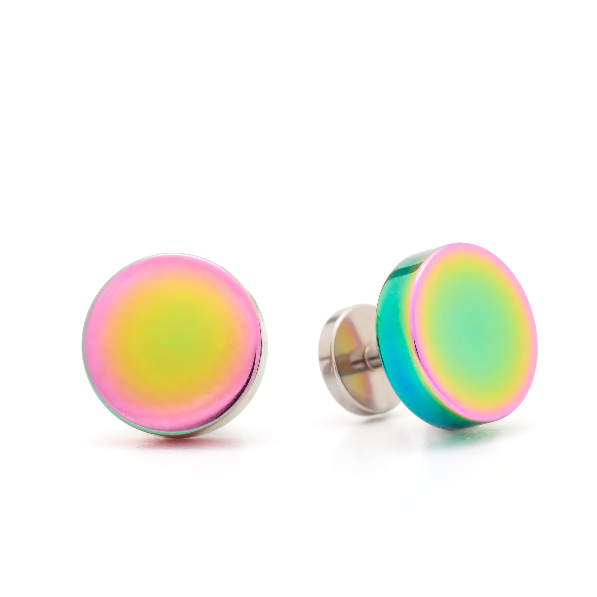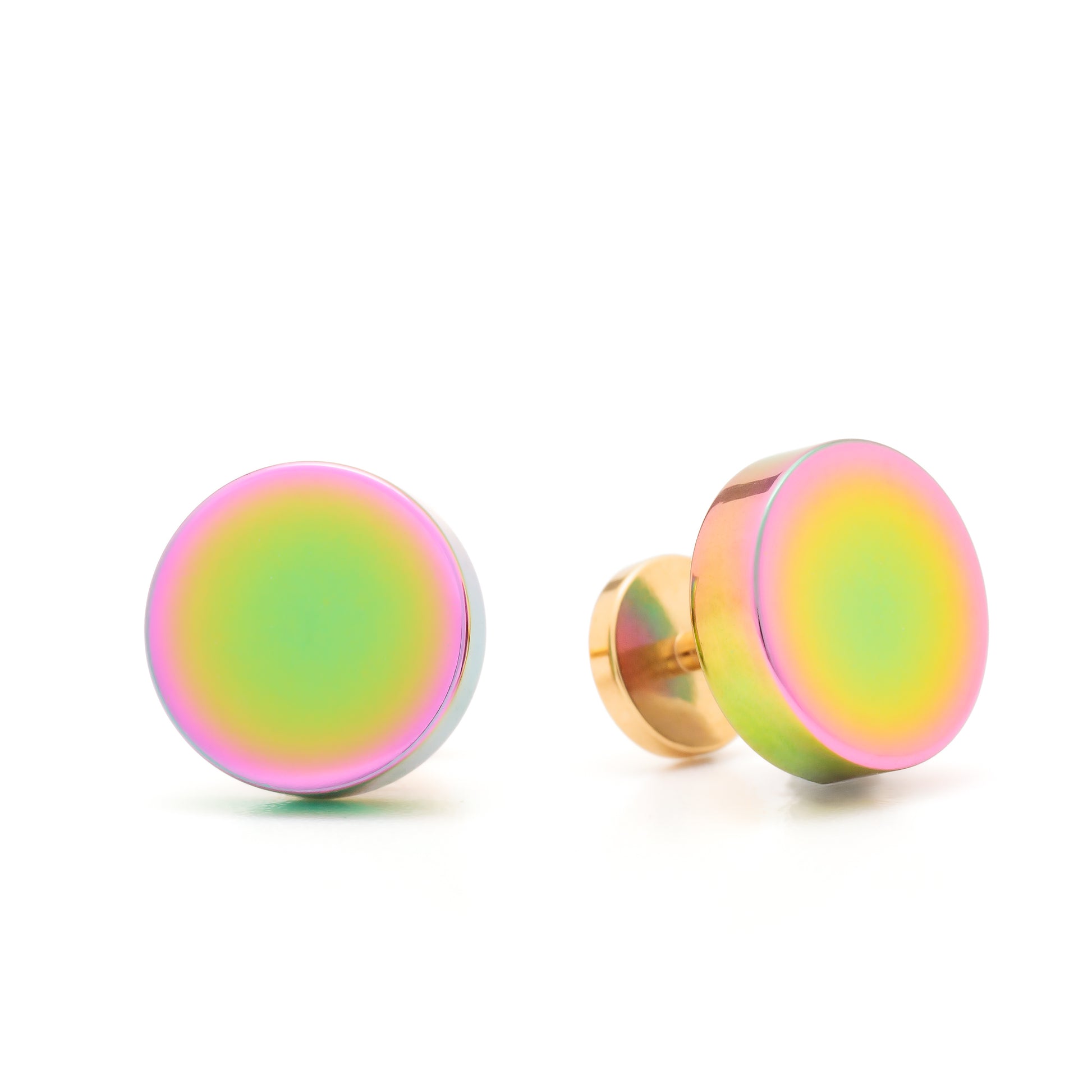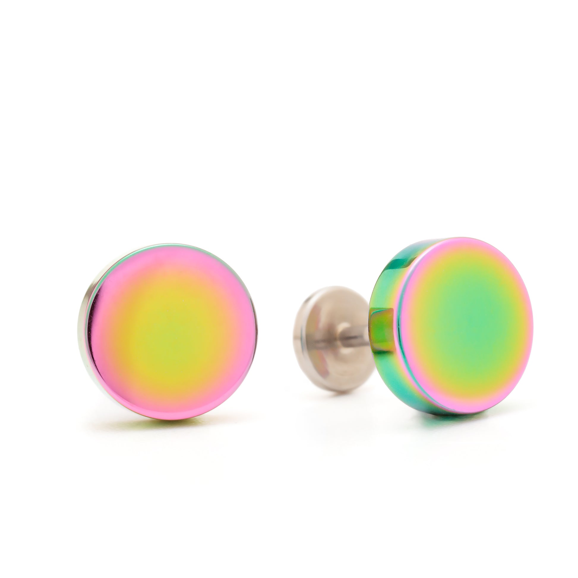 Vår mest älskade modell i en stilren, platt design. Nu i regnbågsfärger med en mjuk ljusgrön nyans som huvudton. Jade står för lugn och harmoni, en färg som för tankarna till naturens balans. Ett par titanörhängen för dig som vill bära en frisk, mjuk energi varje dag.