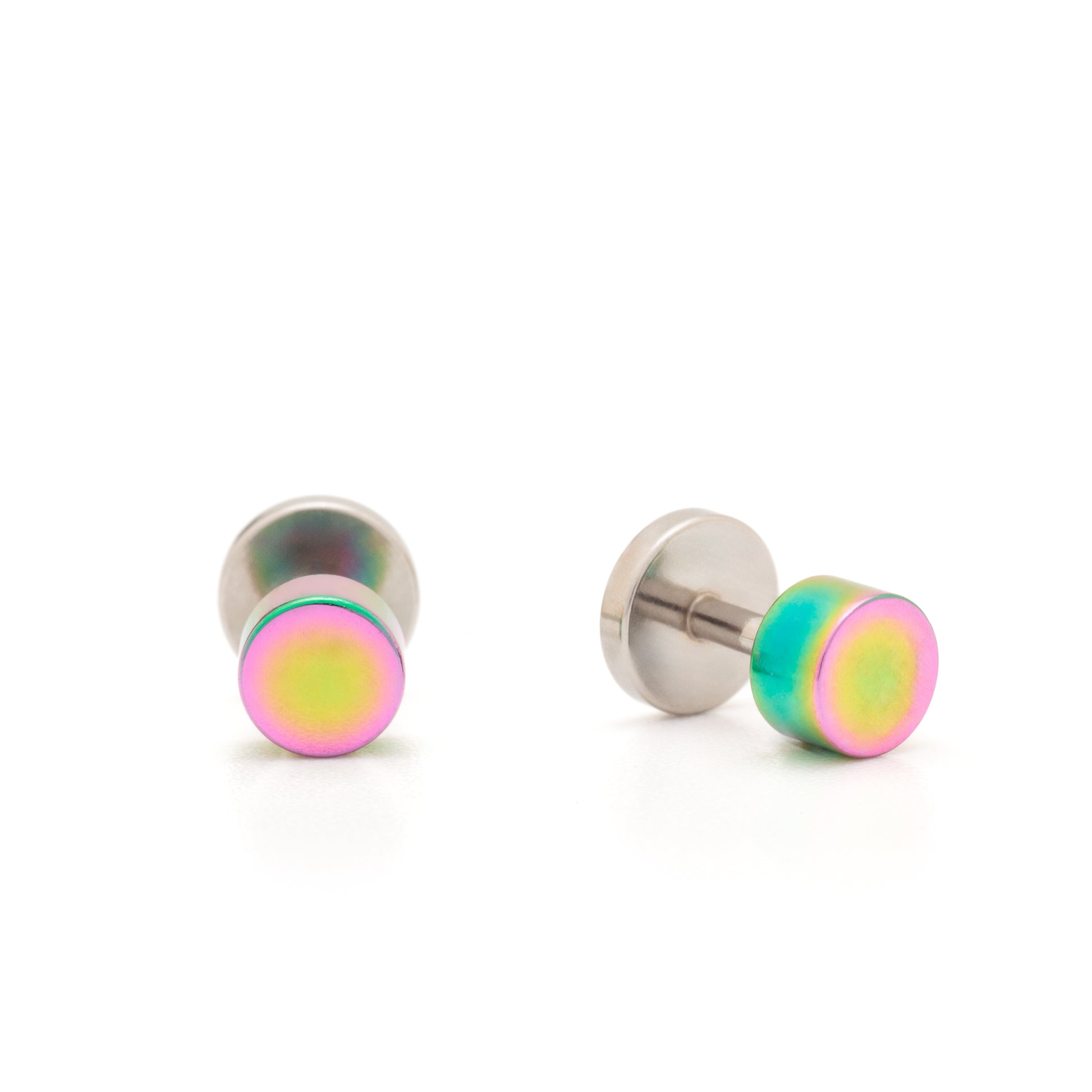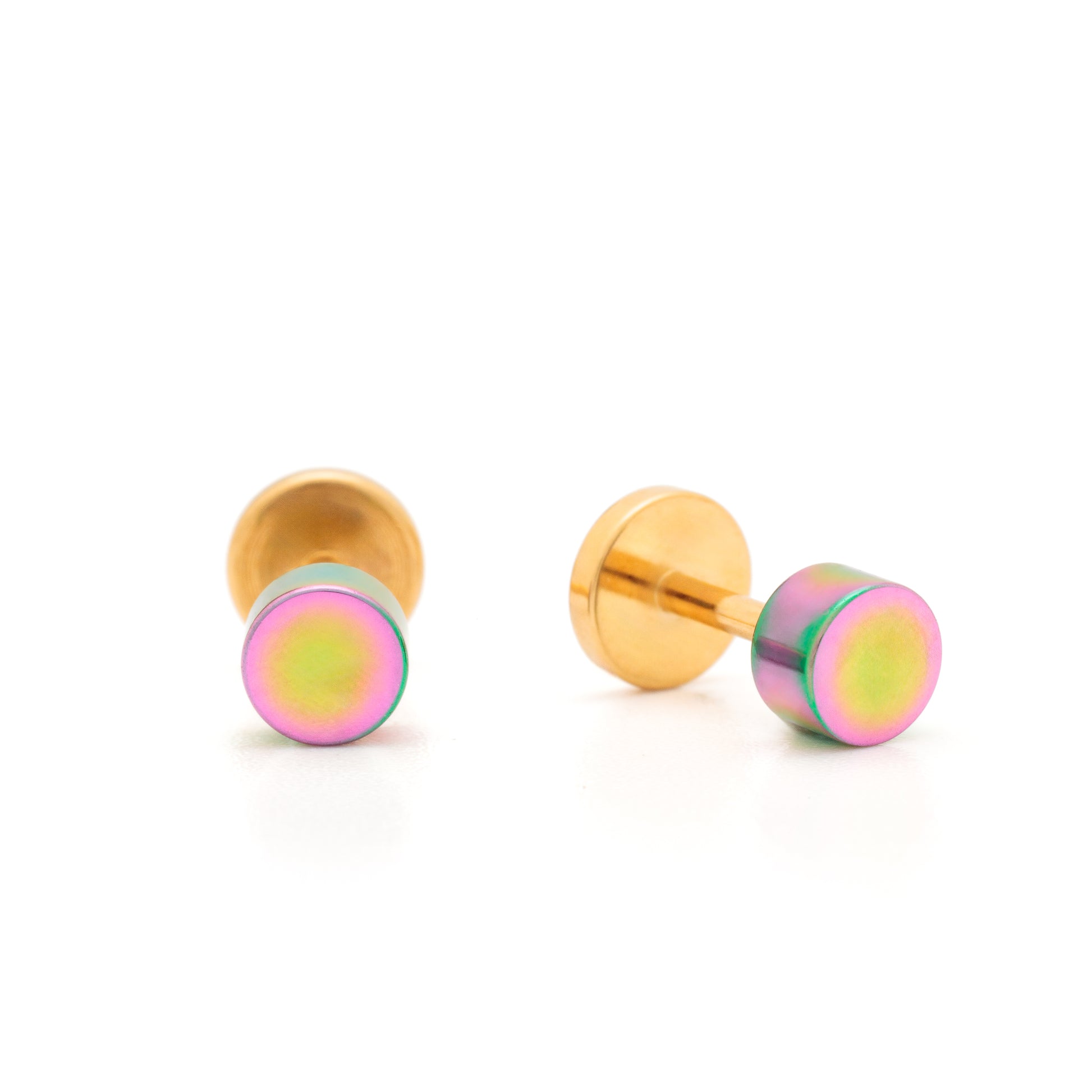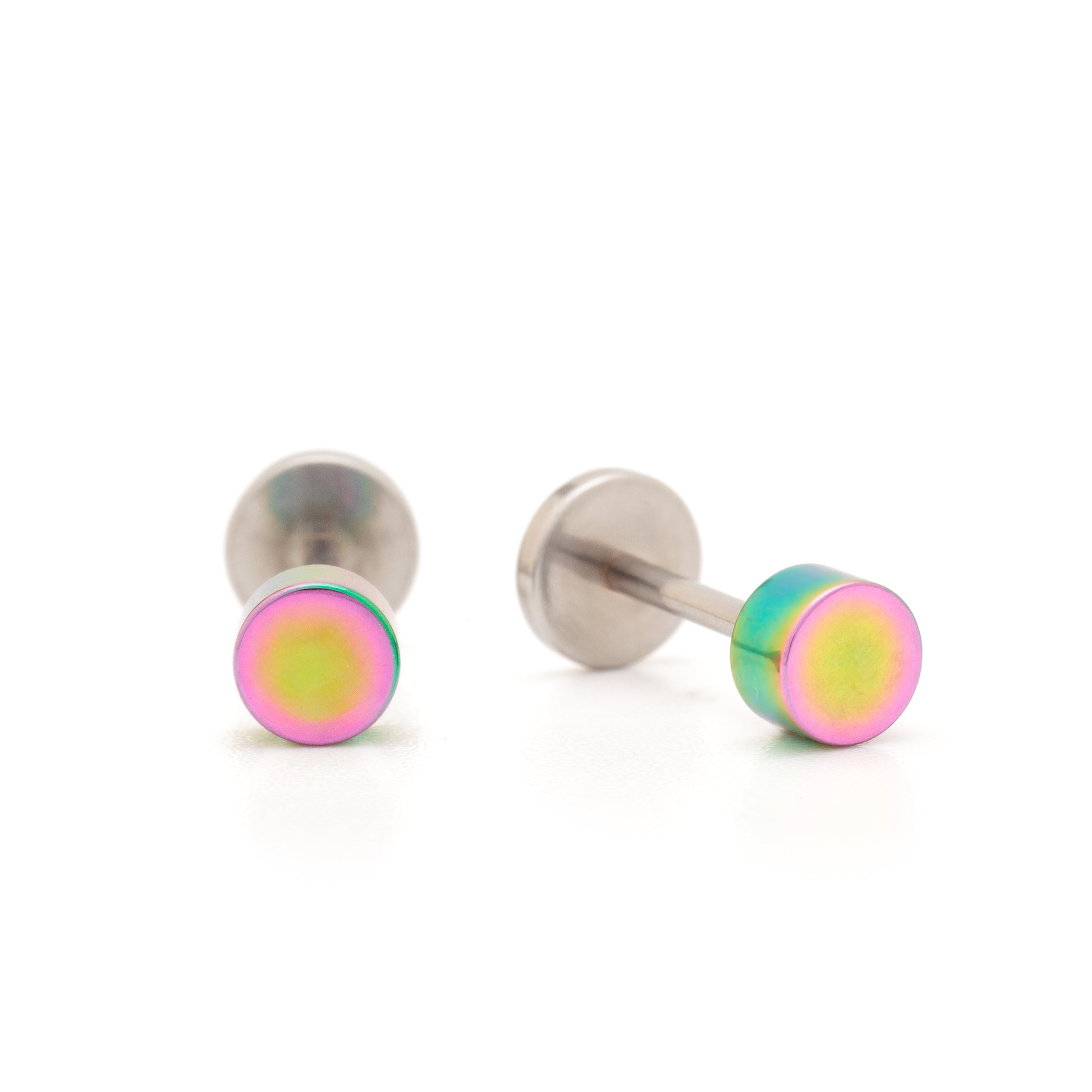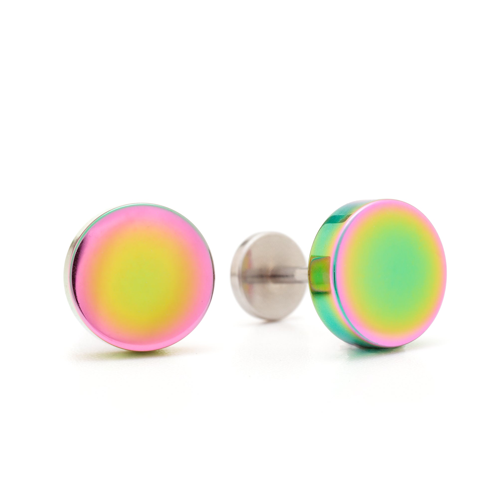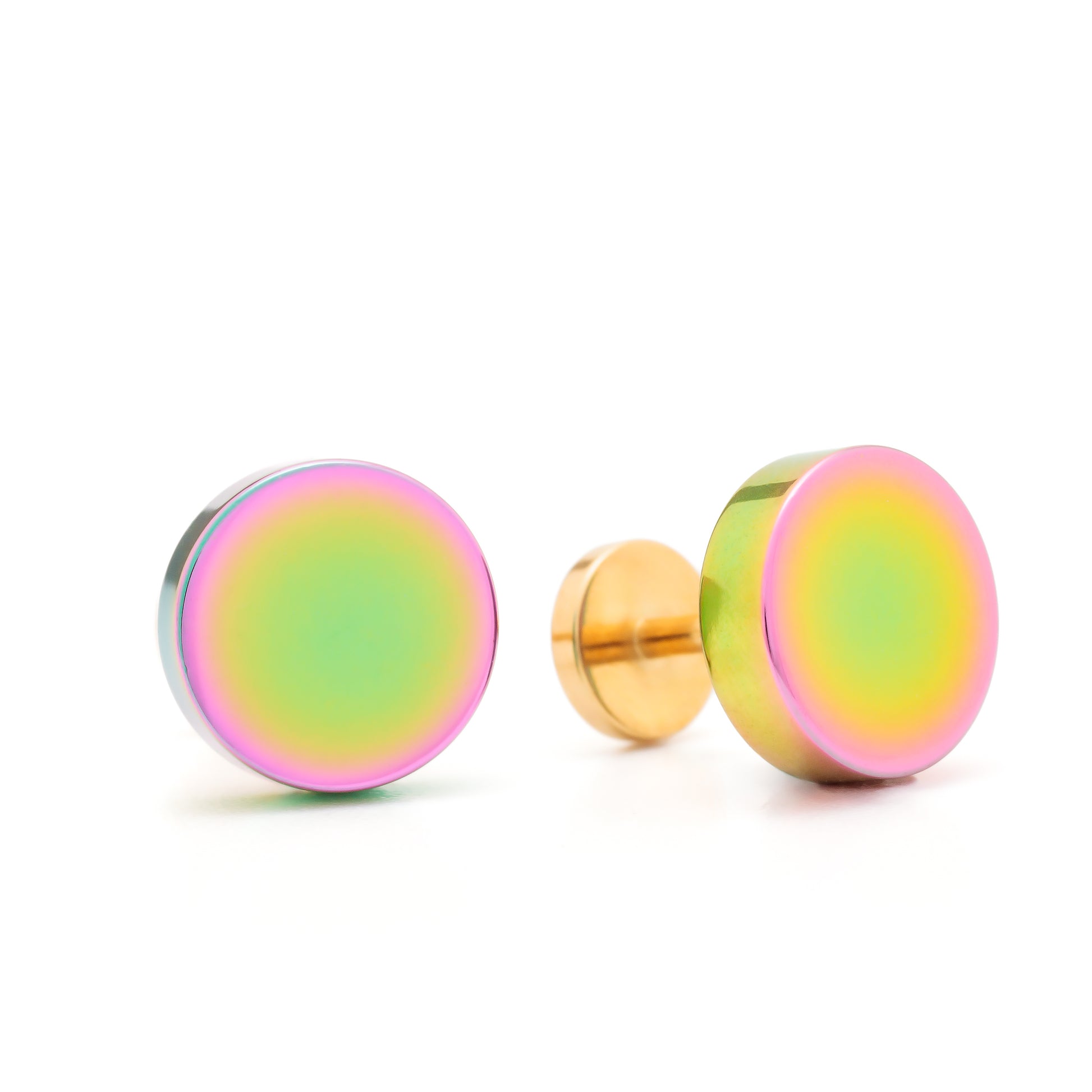 Vår mest älskade modell i en stilren, platt design. Nu i regnbågsfärger med en mjuk ljusgrön nyans som huvudton. Jade står för lugn och harmoni, en färg som för tankarna till naturens balans. Ett par titanörhängen för dig som vill bära en frisk, mjuk energi varje dag.