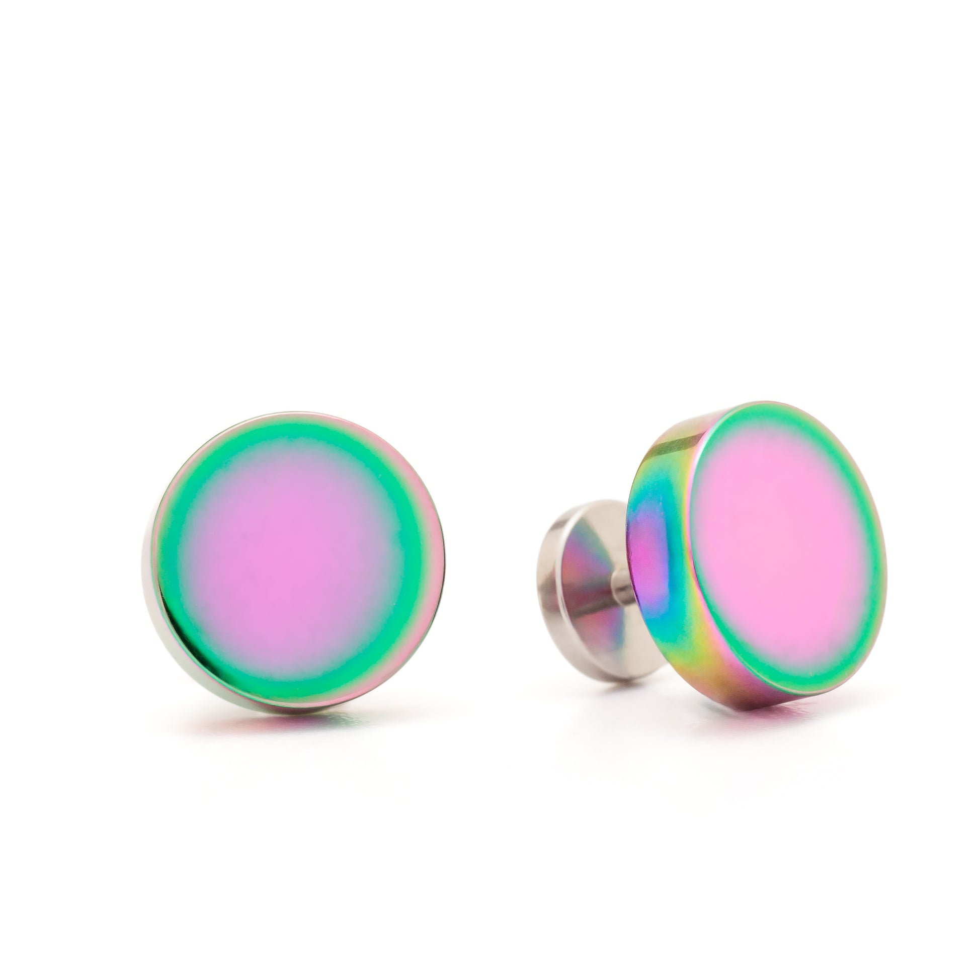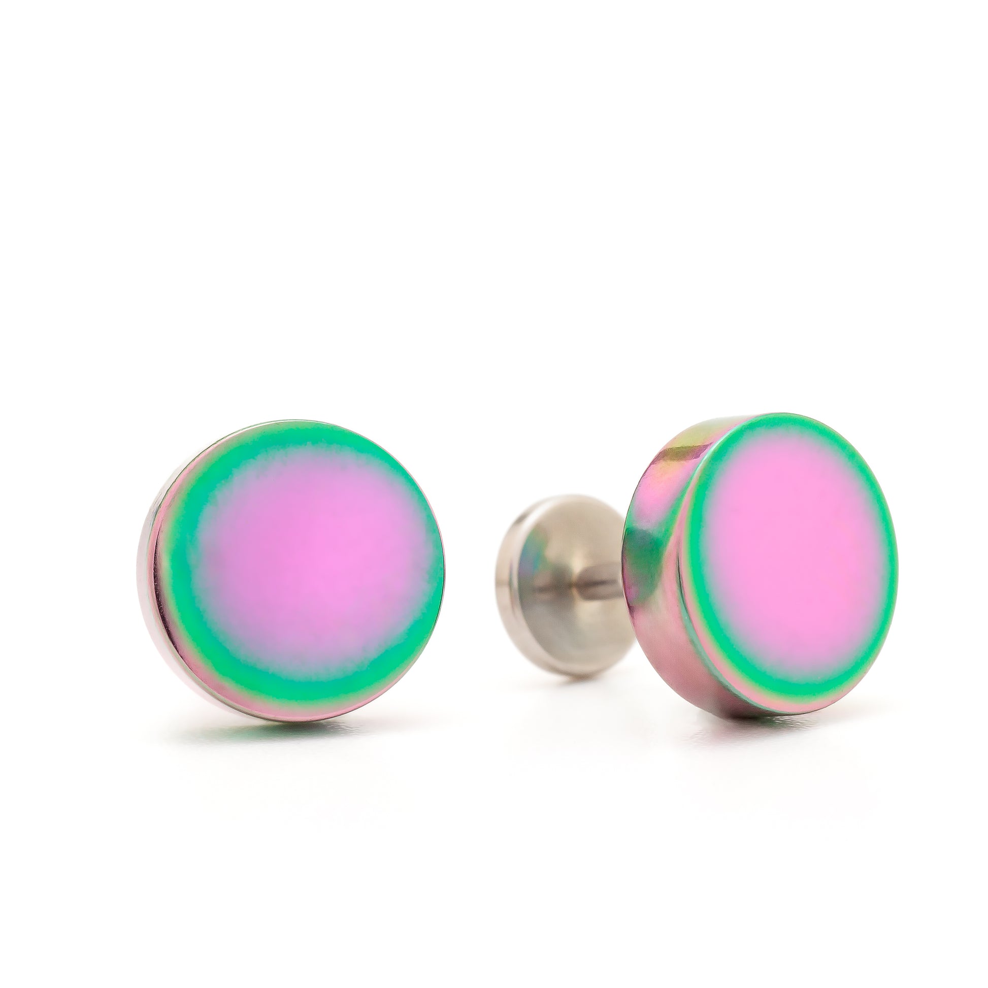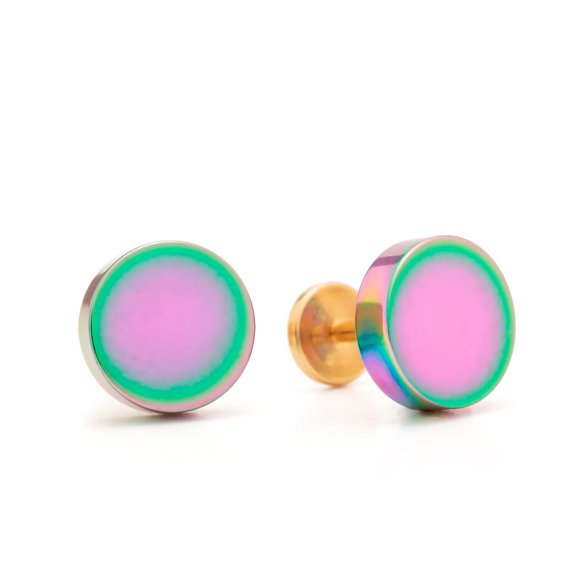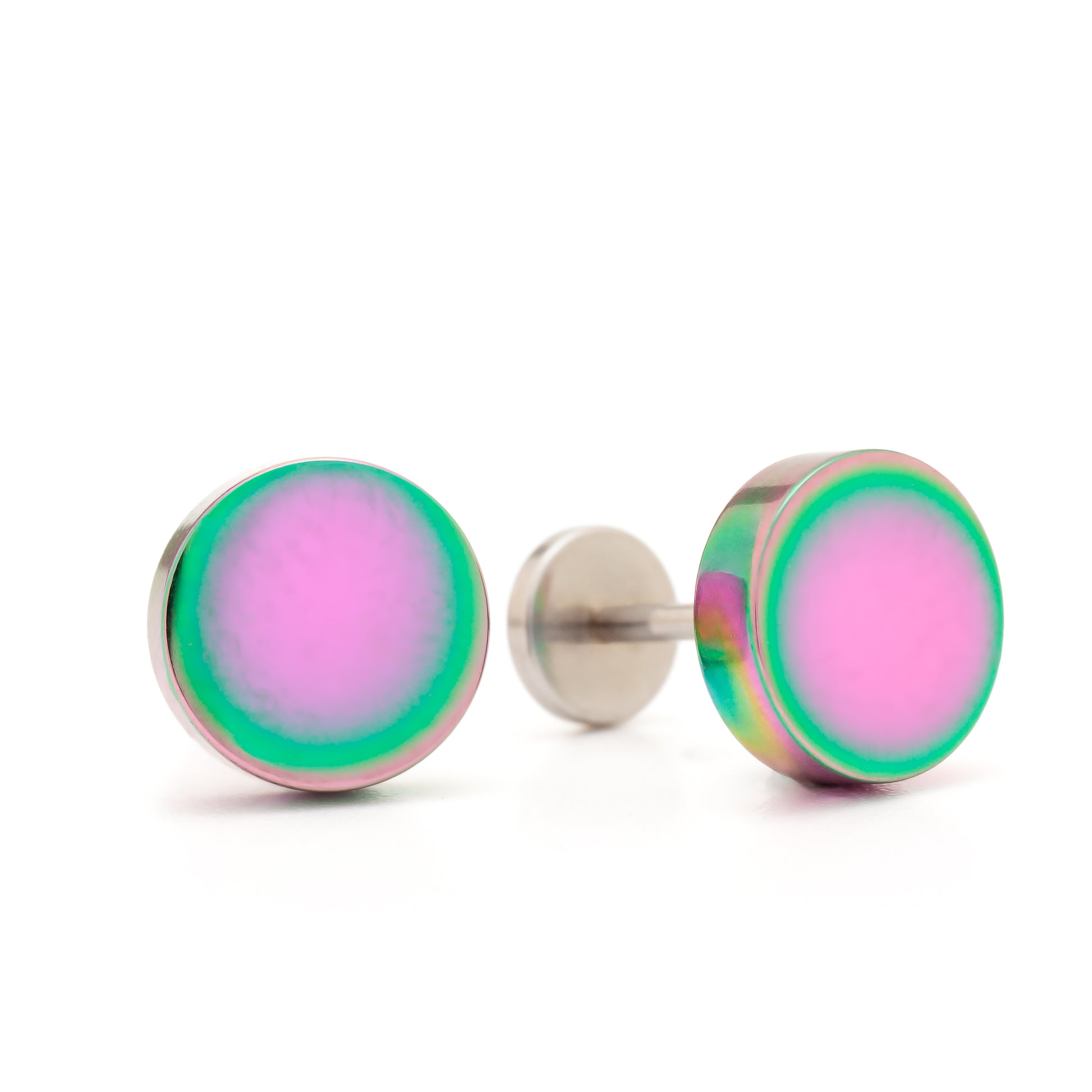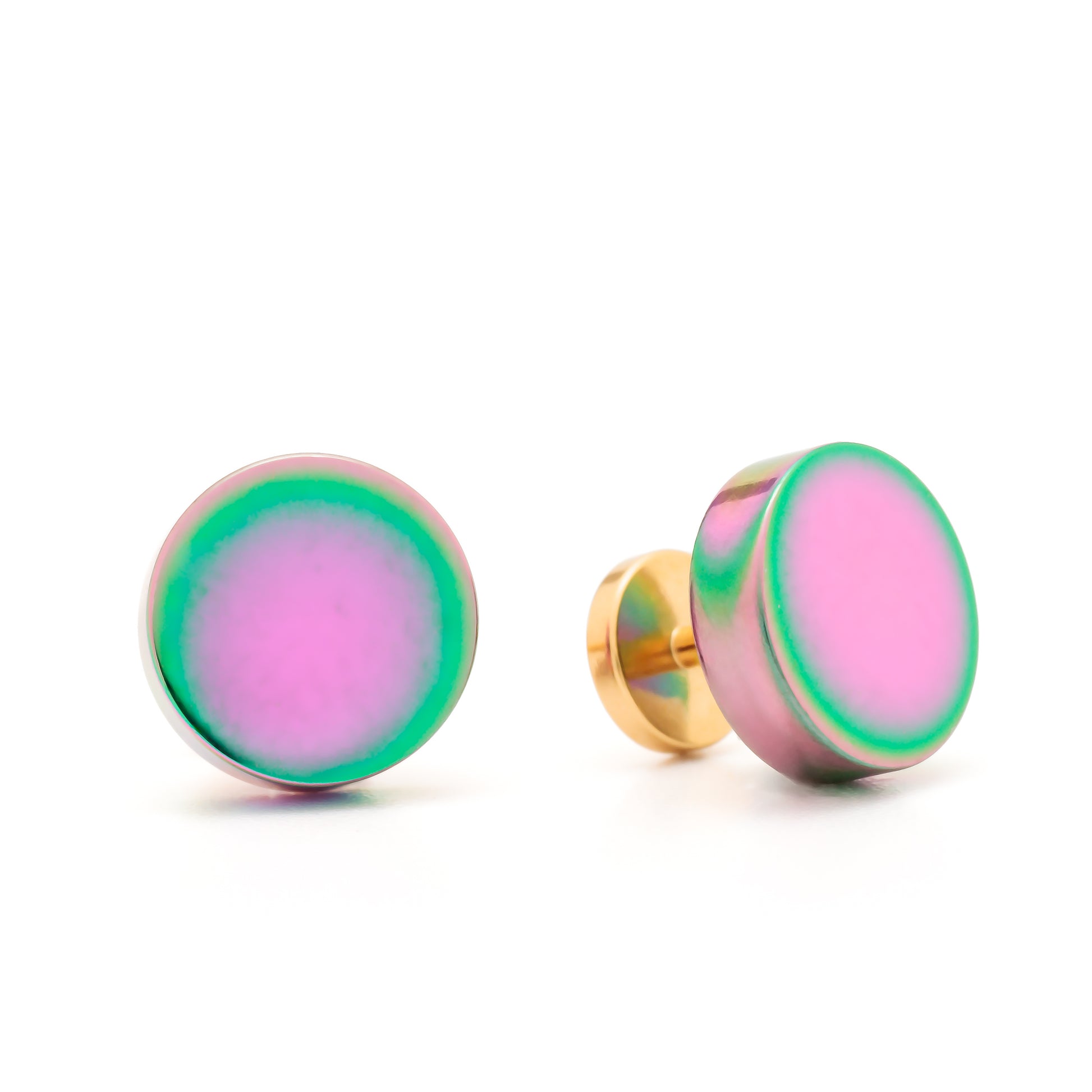 Vår mest älskade modell i en stilren, platt design. Nu i regnbågsfärger med en mjuk rosa nyans som huvudton. Rose står för kärlek och mjukhet. Ett par titanörhängen för dig som vill bära värme och omtanke nära.