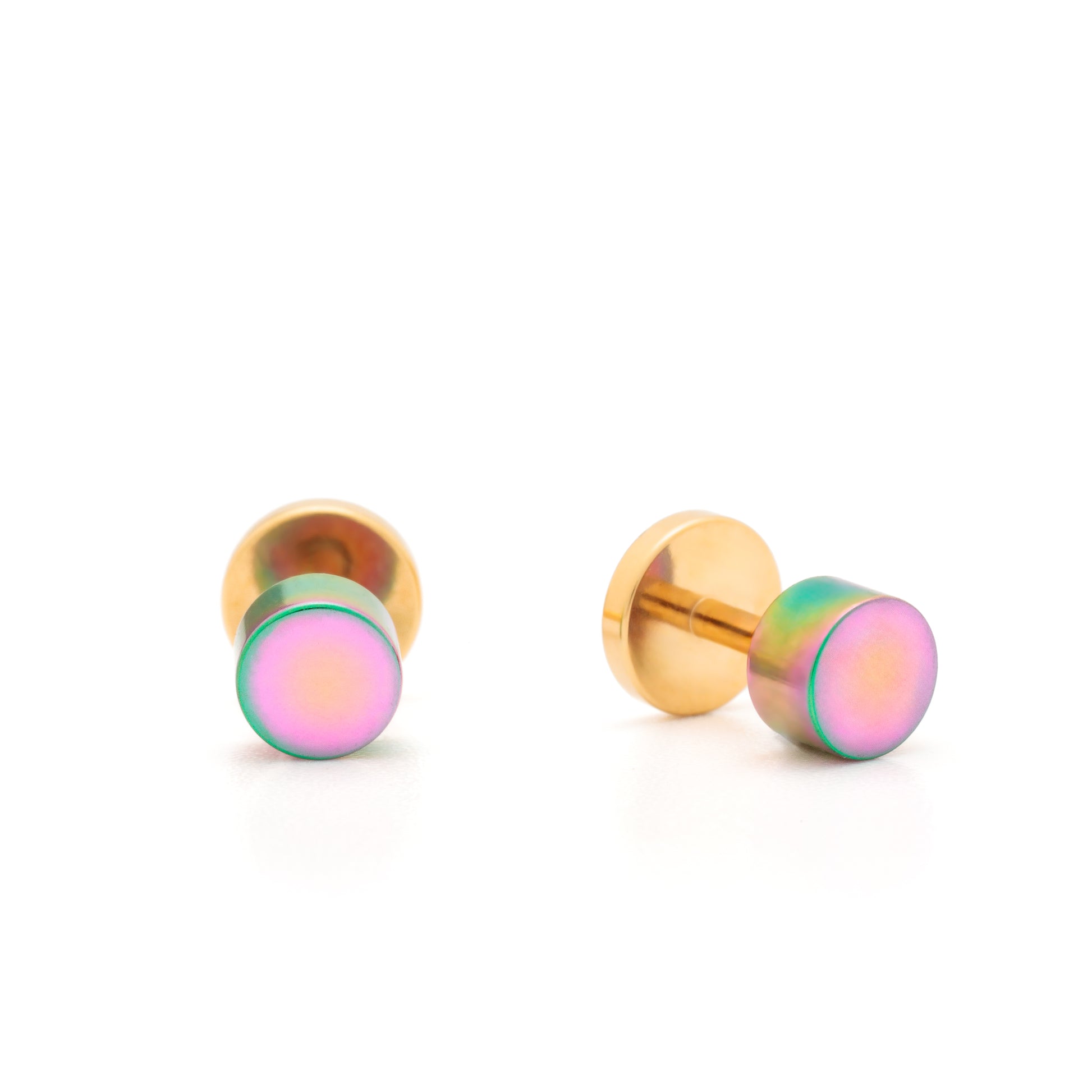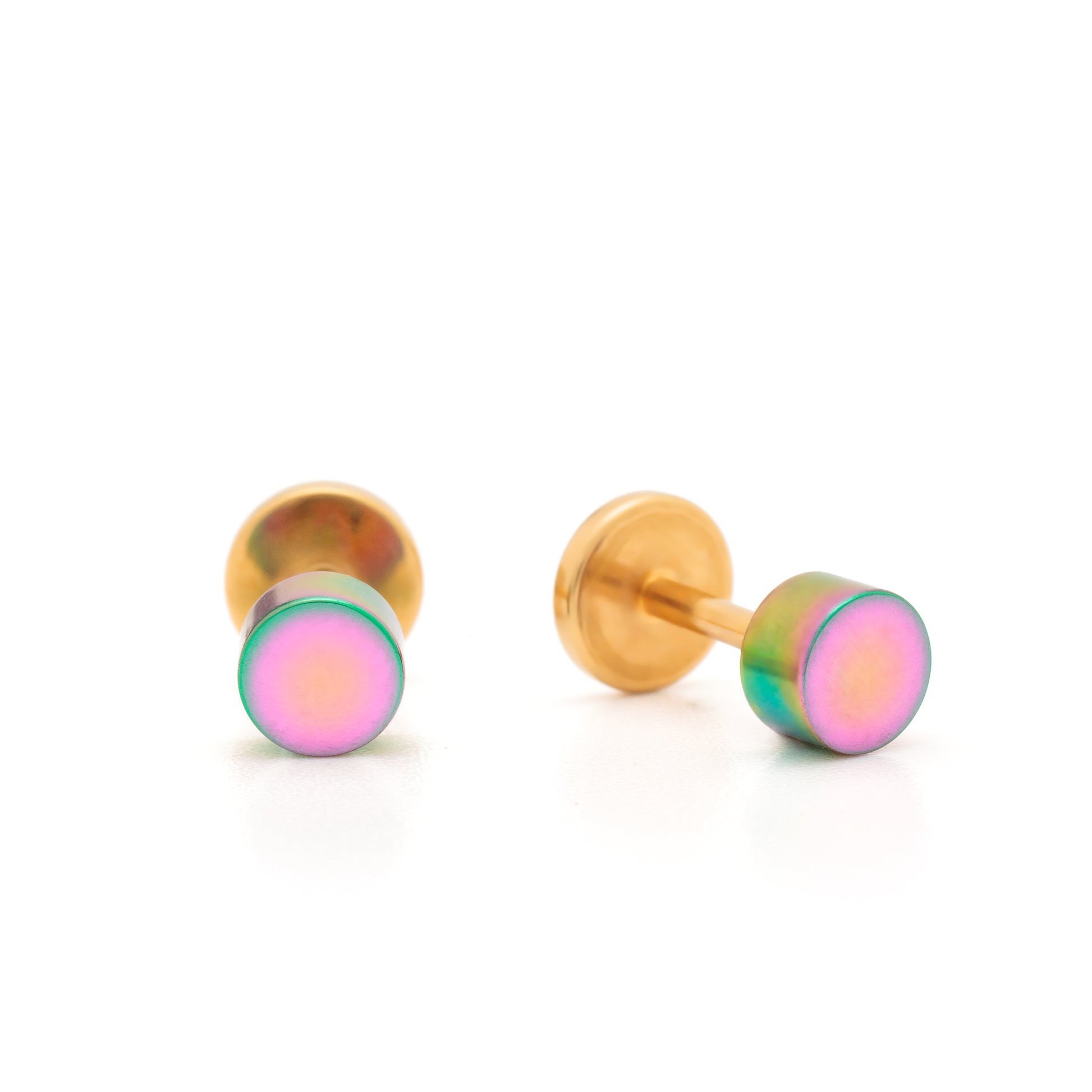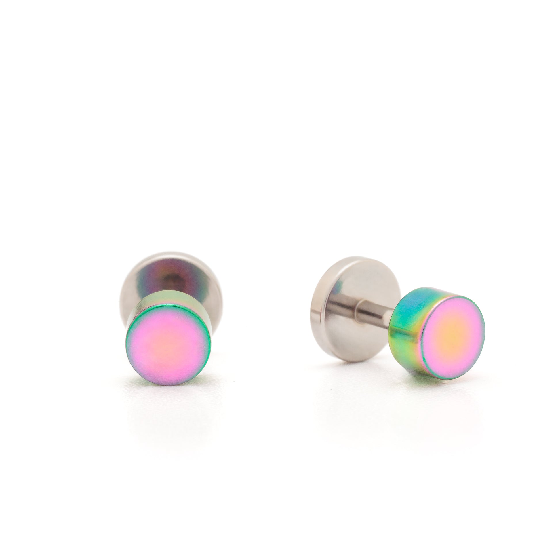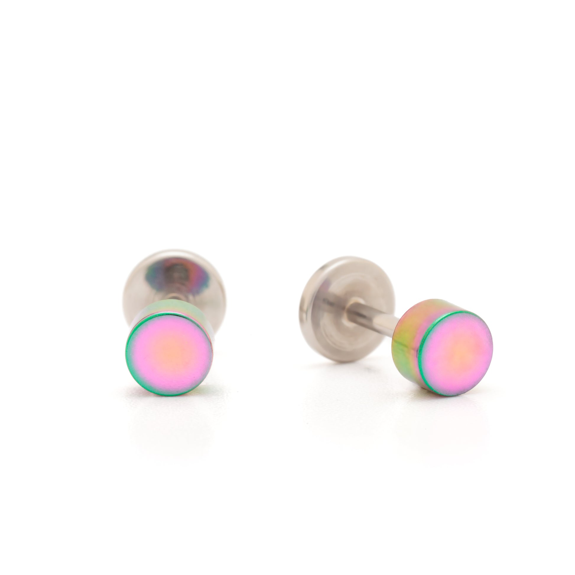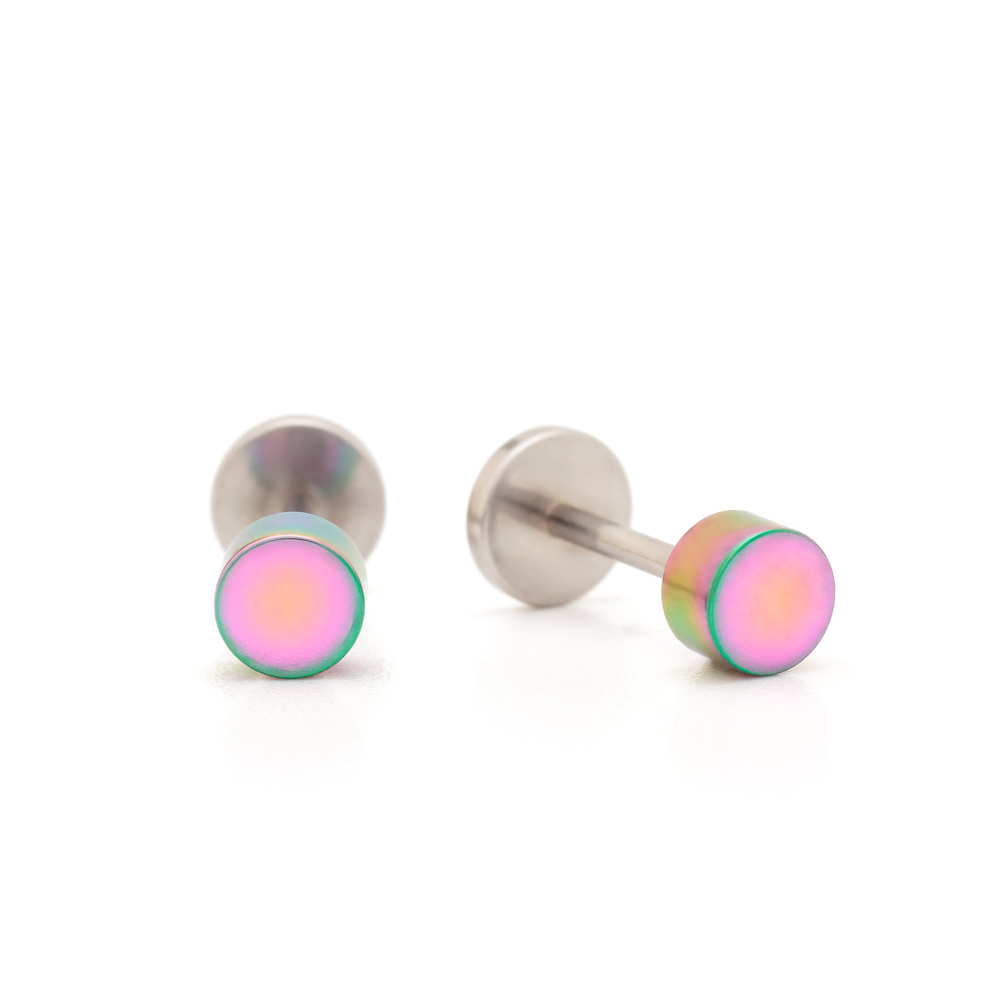 Vår mest älskade modell i en stilren, platt design. Nu i regnbågsfärger med en mjuk rosa nyans som huvudton. Rose står för kärlek och mjukhet. Ett par titanörhängen för dig som vill bära värme och omtanke nära.